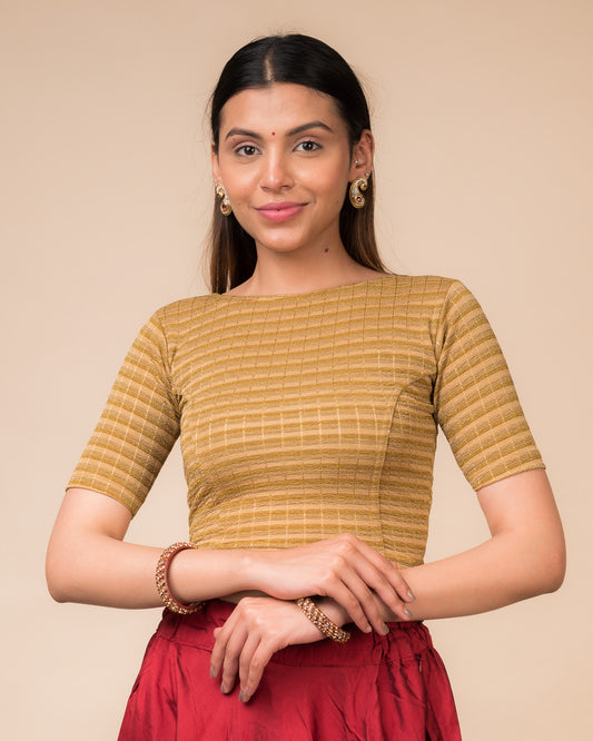 Nupur Dark Gold Zari Striped Elbow Sleeve Boat Neck Blouse by Advi
