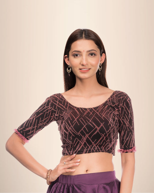 Madhu Pink Zari Organza Ruffle Frill Stretchable Slip-On Blouse Advi