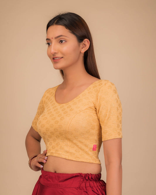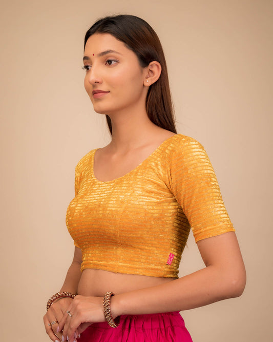 Urvi Mustard Blouse with Gold Zari and Stretchable Jacquard by Advi