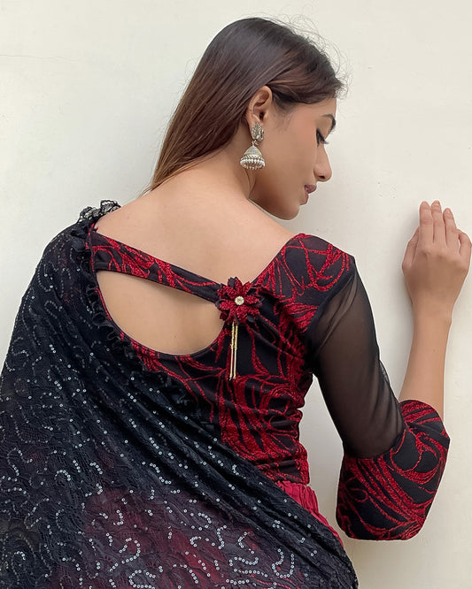 Gulshan Black Velvet Blouse with Organza Bows and Potli Back by Advi