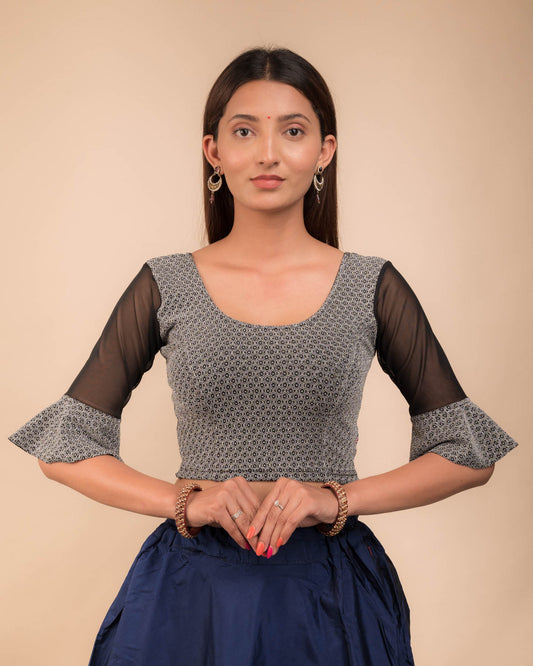 Rashi Grey Jacquard Square Neckline Cocktail Wear Stretchable Blouse