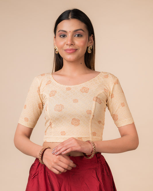 Gauri Fawn Puff Sleeve Stretchable Blouse with Gold Glitter Melange Advi