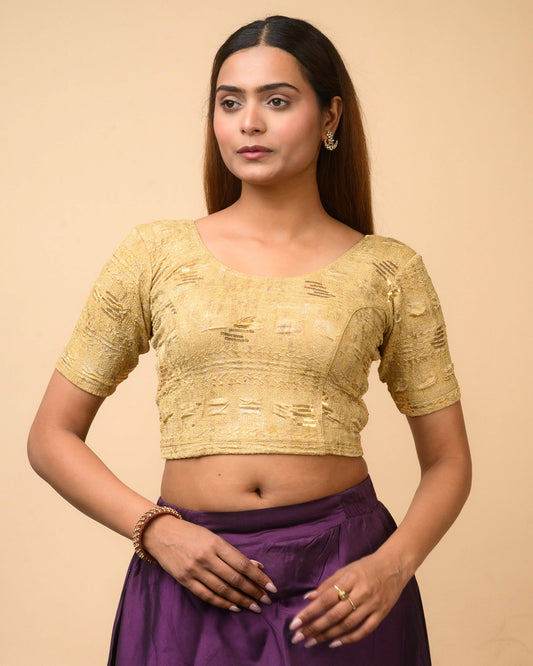 Aabha Gold Blouse – Stretchable Gold Design with Melange Finish by Advi