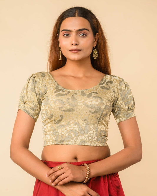 Mithila Metallic Cream Gold Puff Sleeve Stretchable Saree Blouse Advi