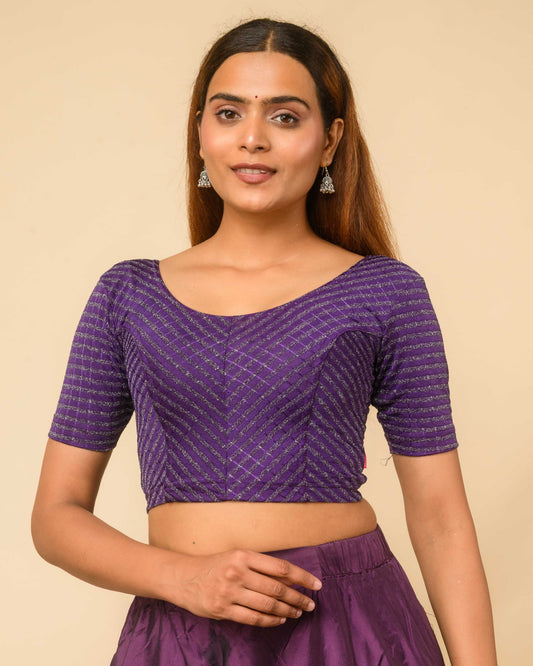 Amba Deep Purple Jacquard Blouse with Zari Stripes and Zig Zag by Advi