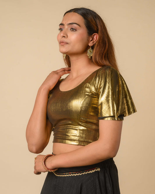 Mithila Metallic Champagne Gold Puff Sleeve Stretchable Saree Blouse Advi