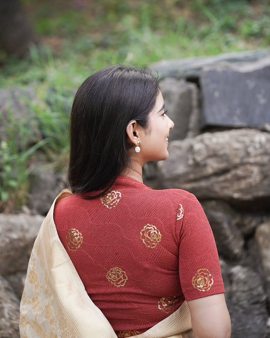 Gulabo Rust Sequin High-Neck Blouse