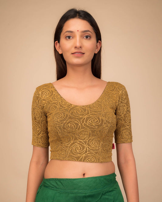 Rosey Metallic Rose Emboss Dark Gold Party Wear Saree Blouse
