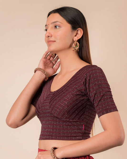 Sitara Wine Gold Sequin Puff Sleeve Stretchable Slip On Blouse for Advi