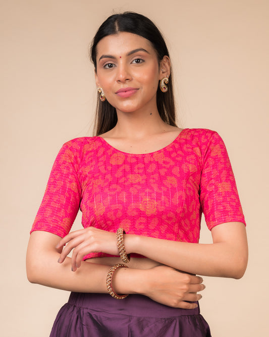 Kubra Rani Stretchable Slip On Blouse by Advi with Floral Metallic Foil Detail