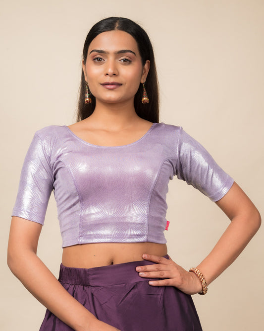 Mallika Lavender Metallic Blouse in Foil Jacquard | Stretchable Festive Wear