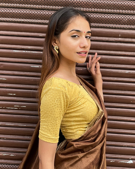 Preet Rani Banarasi Gold Zari Keri Design Elbow Sleeve Readymade Blouse