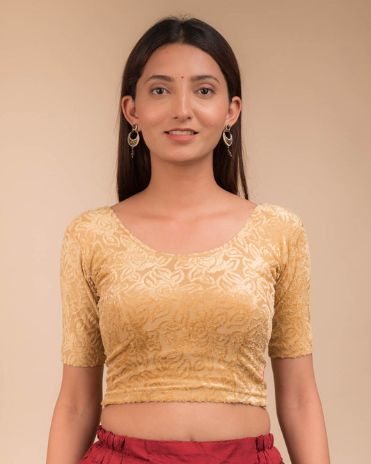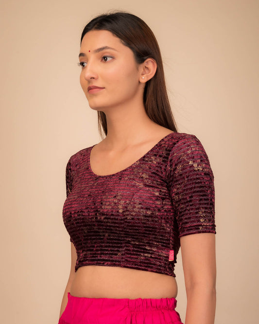 Vasu Overlap Velvet Gold Foil Maroon Stretchable Saree Blouse | Everyday Comfort