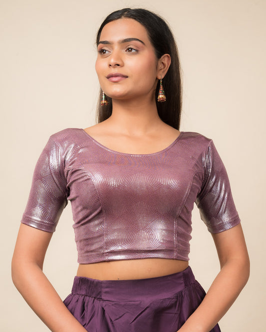 Mallika Purple Foil Finish Blouse in Shimmer Jacquard | Readymade Partywear