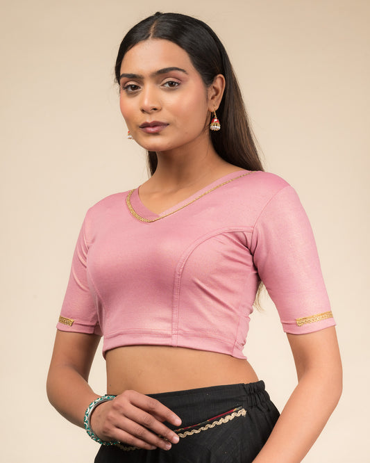 Nohreen Onion Solid Shimmer V Neck Blouse | Stretchable Partywear Fit