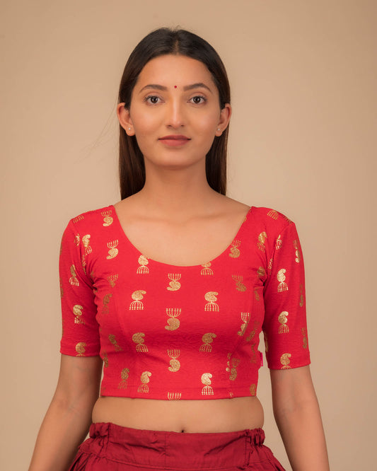 Paavna Red Jacquard Organza Sleeve Stretchable Saree Blouse Advi