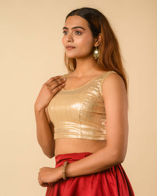 Oorfi Gold Metallic Shimmer Sleeveless Stretchable Saree Blouse Advi