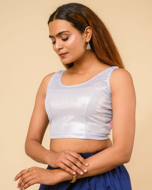 Oorfi Silver Metallic Shimmer Sleeveless Stretchable Saree Blouse Advi