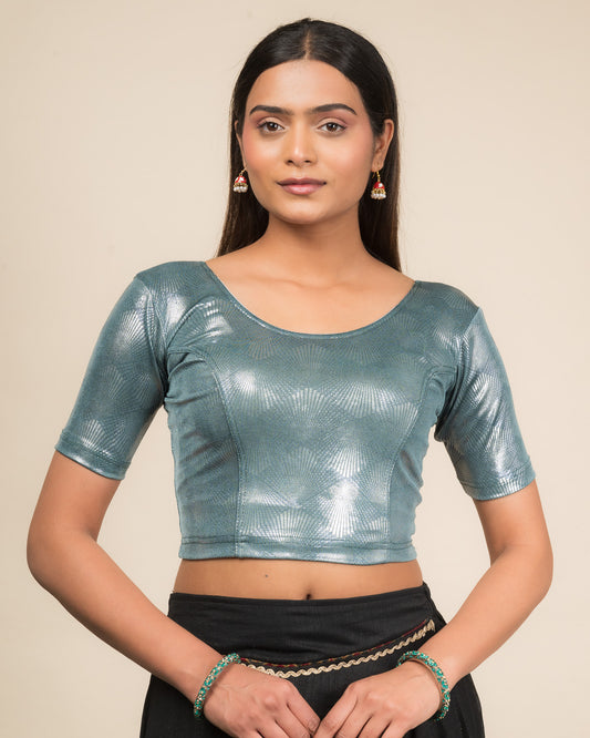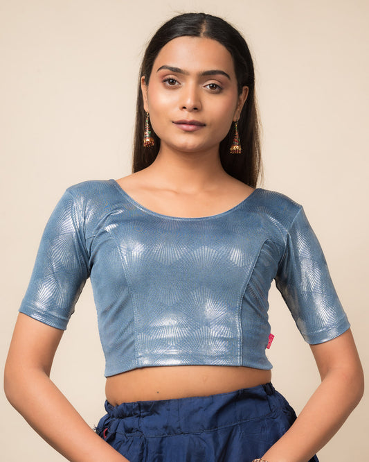 Mallika Blue Metallic Blouse with Pastel Shine | Stretchable Indo Western Choli
