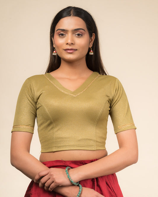 Nohreen Mehendi Shimmer Blouse with Gold Lace | Readymade Traditional Choli