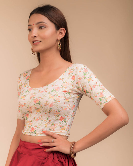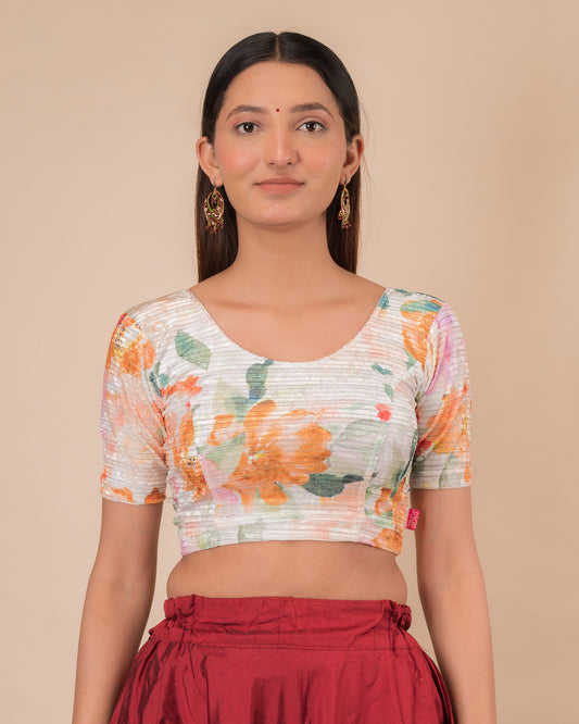 Sahiba Digital Print Multi Floral Stretchable Slip On Blouse