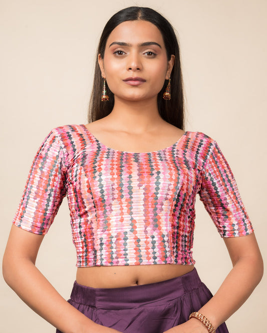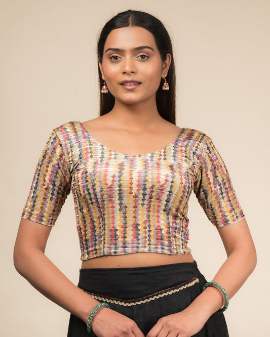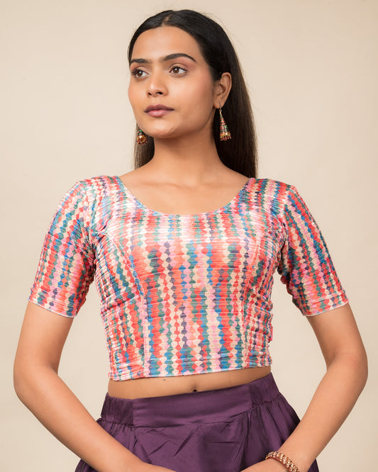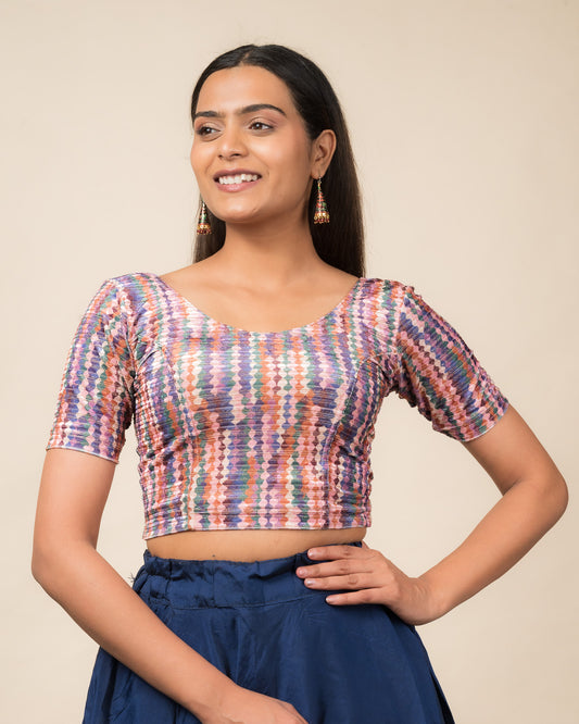 Dunki Velvet Rani Multicolor Printed Stretchable Blouse | Ready-To-Wear