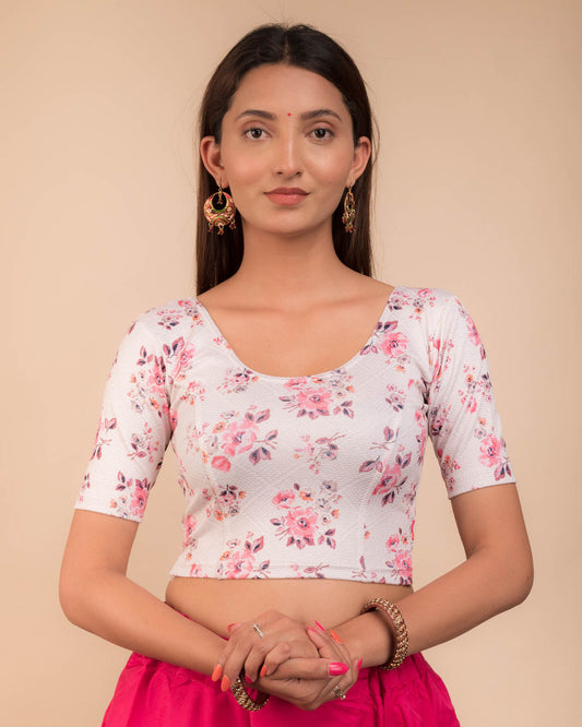 Sahiba Digital Print Pink Floral Stretchable Slip On Blouse