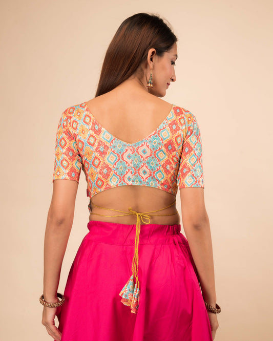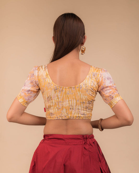 Kohima Watercolor Multicolour Printed Blouse | Readymade Puff Sleeve Choli