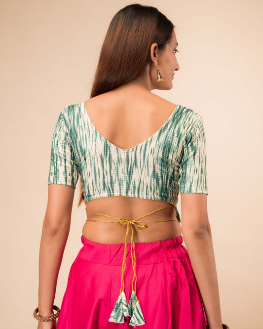 Baawri Green Multicolour Printed Stretchable Saree Blouse Advi