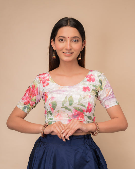 Sahiba Digital Print Leaf Stretchable Slip On Blouse