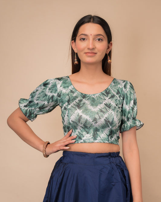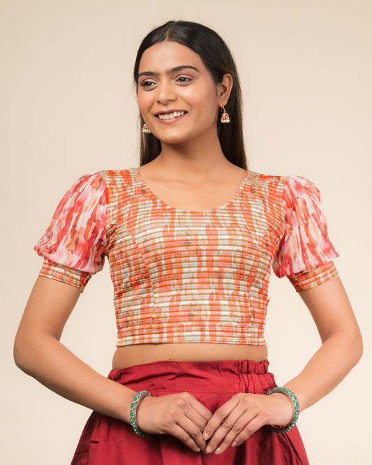 Kohima Abstract Print Blouse with Metallic Finish | Stretchable Puff Sleeve Fit