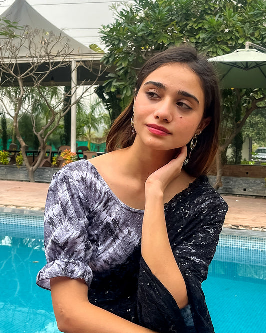 Bandhan Grey Tie-Dye Slip On Glitter Blouse with Shibori Touch by Advi