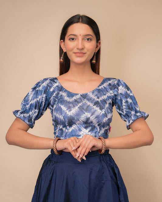Bandhan Navy Tie-Dye Glitter Stretchable Blouse with Shibori Print Advi