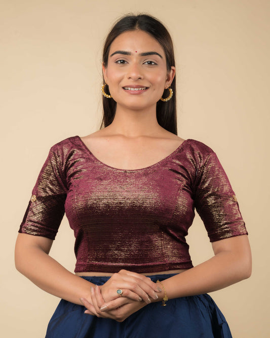 Sitara Wine Gold Sequin Puff Sleeve Stretchable Slip On Blouse for Advi