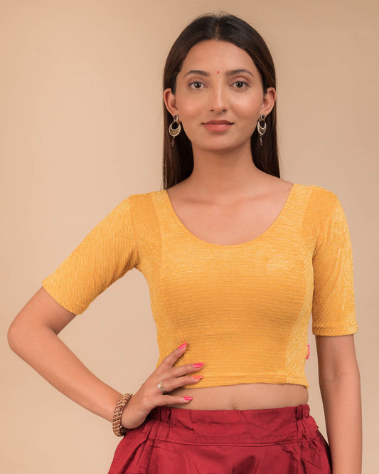 Lata Velvet Zari Mustard Round Neck | Elbow Sleeve Readymade Saree Blouse