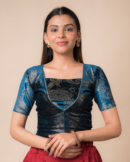 Ambar Teal Blue Velvet Blouse – Readymade Designer Choli With Elegant Textured Design