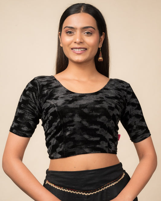 Kriti Black Velvet Designer Readymade Stretchable Blouse for Saree | Party Wear