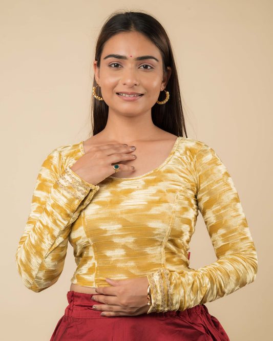 Kavya Velvet Gold Long Sleeve Saree Blouse – Ethnic Wear Stretchable Blouse