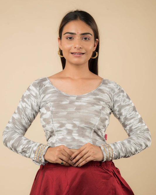 Kriti Velvet Silver Textured Blouse | Stretch Fit for Silk Sarees