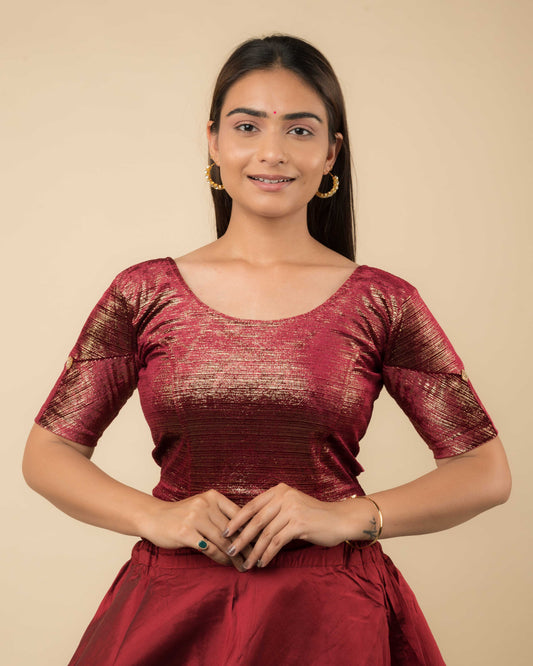 Sitara Maroon Stretchable Slip On Blouse with Sequin Foil Puff Sleeves Advi