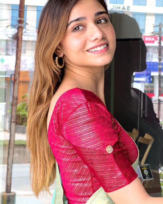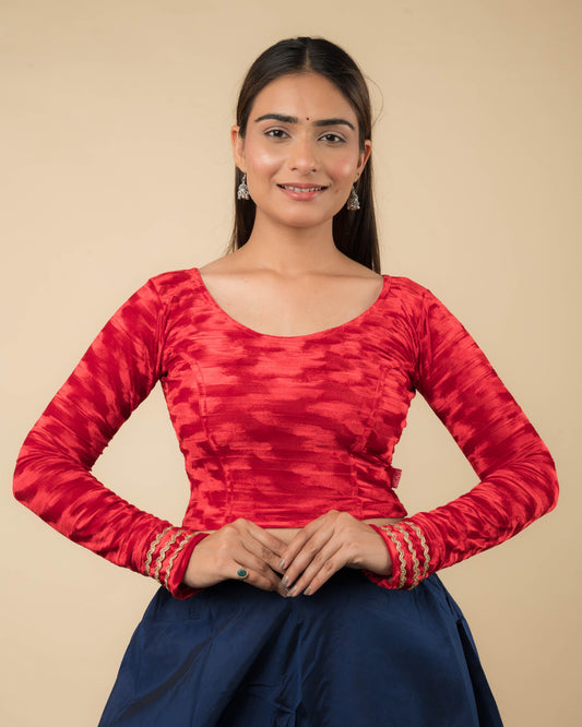 Velvet Red Long Sleeve Blouse with Zari Cuffs – Bangle Style Readymade Blouse