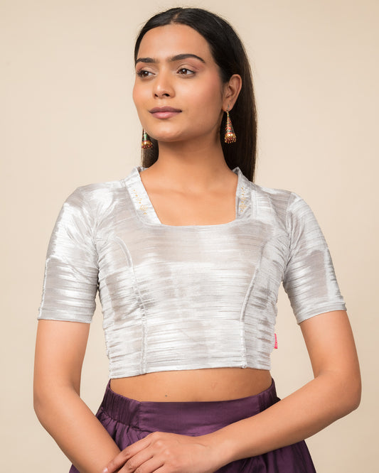 Asha Gray Velvet Square Neck Blouse with Stone Collar & Pleats – Readymade Festivewear