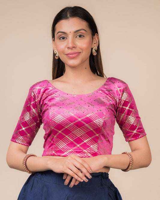 Beri Rani Sequin Burberry Checks Round Neck Slip On Blouse for Festive Advi