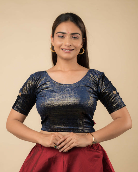 Ambar Navy Velvet Readymade Stretchable Blouse – Jacket Style Slip On Partywear