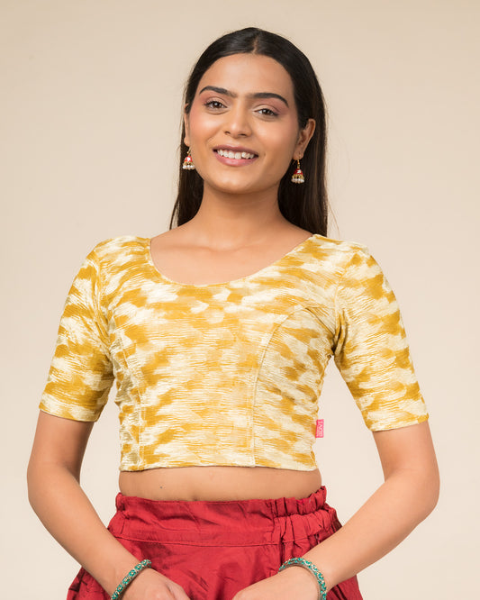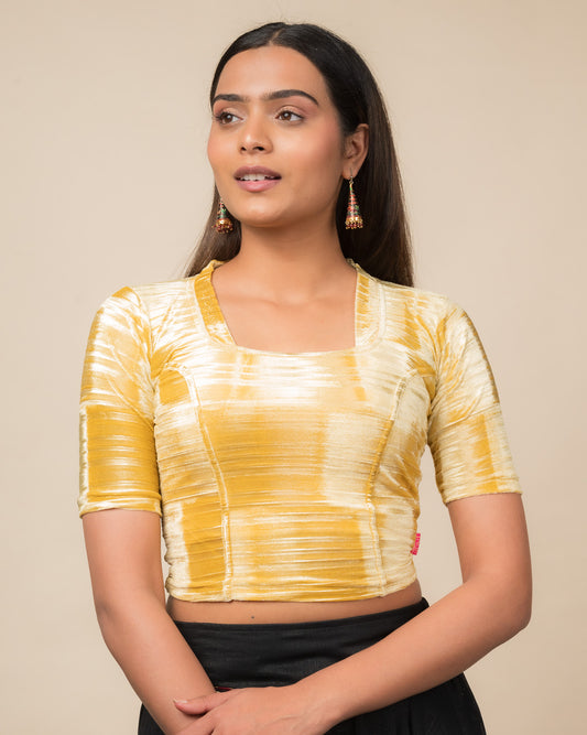 Kriti Velvet Gold Readymade Saree Blouse | Pleated Textured Blouse for Festive Looks