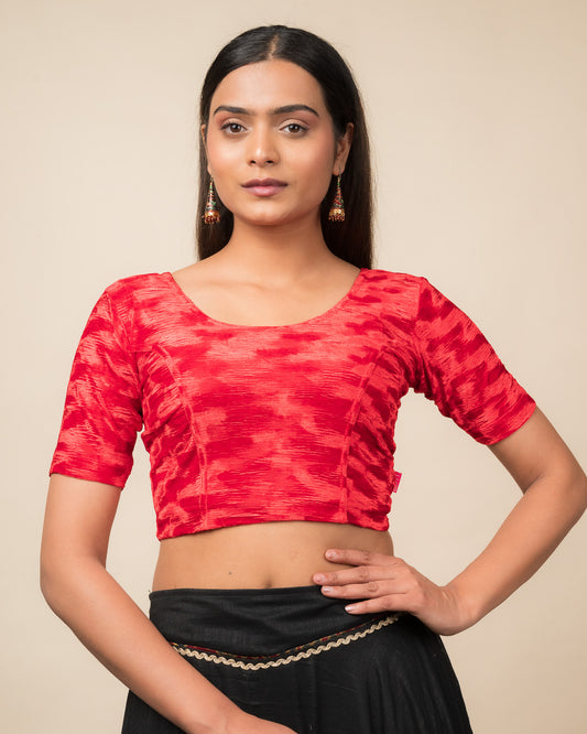 Arkha Red Floral Print Velvet Saree Blouse – Stretch Fit
