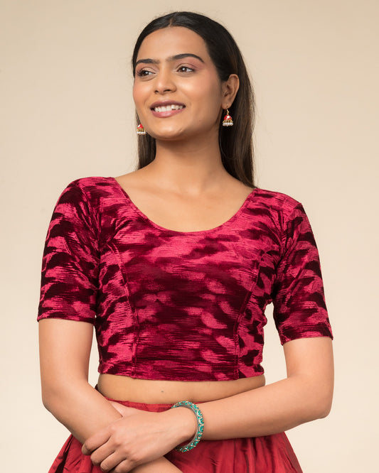 Kriti Velvet Wine Designer Pleated Saree Blouse | Readymade Blouse for Party Wear