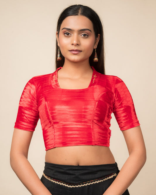 Asha Velvet Red Square Neck Blouse with Embellished Collar – Readymade Blouse