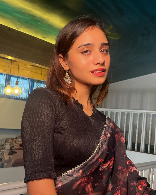 Madhubala Advi Black Organza Voluminous Puff Sleeve Stretchable Chic Blouse