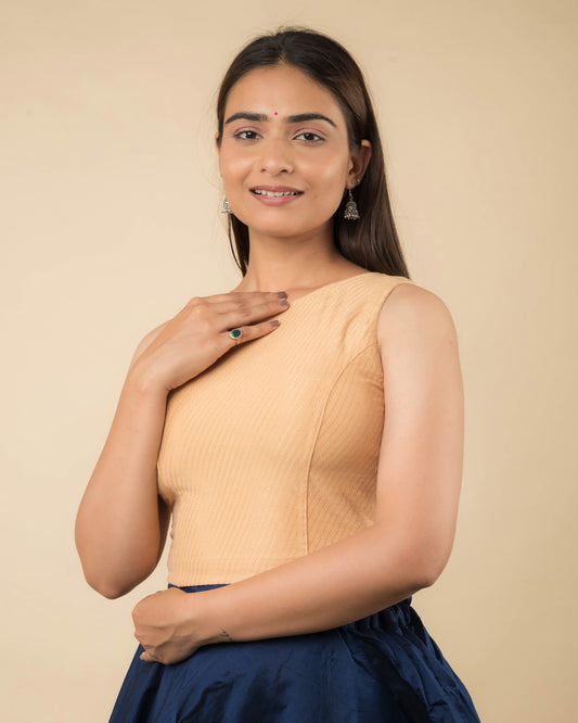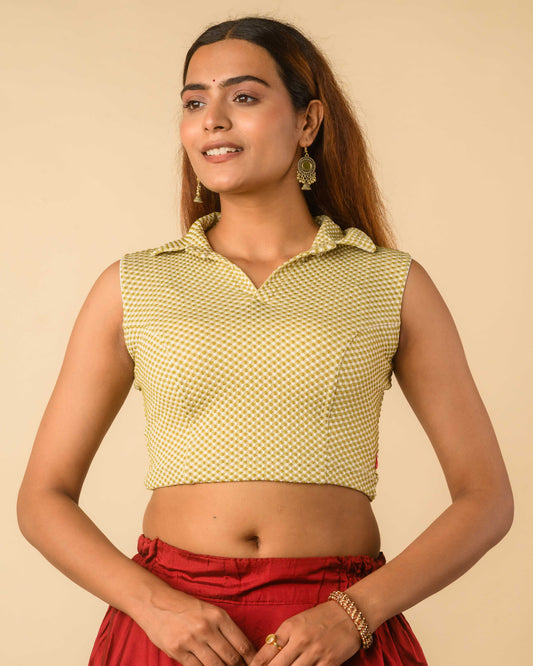 Jyoti Gold Sleeveless Cotton Blouse with Jacquard High Neck Finish by Advi